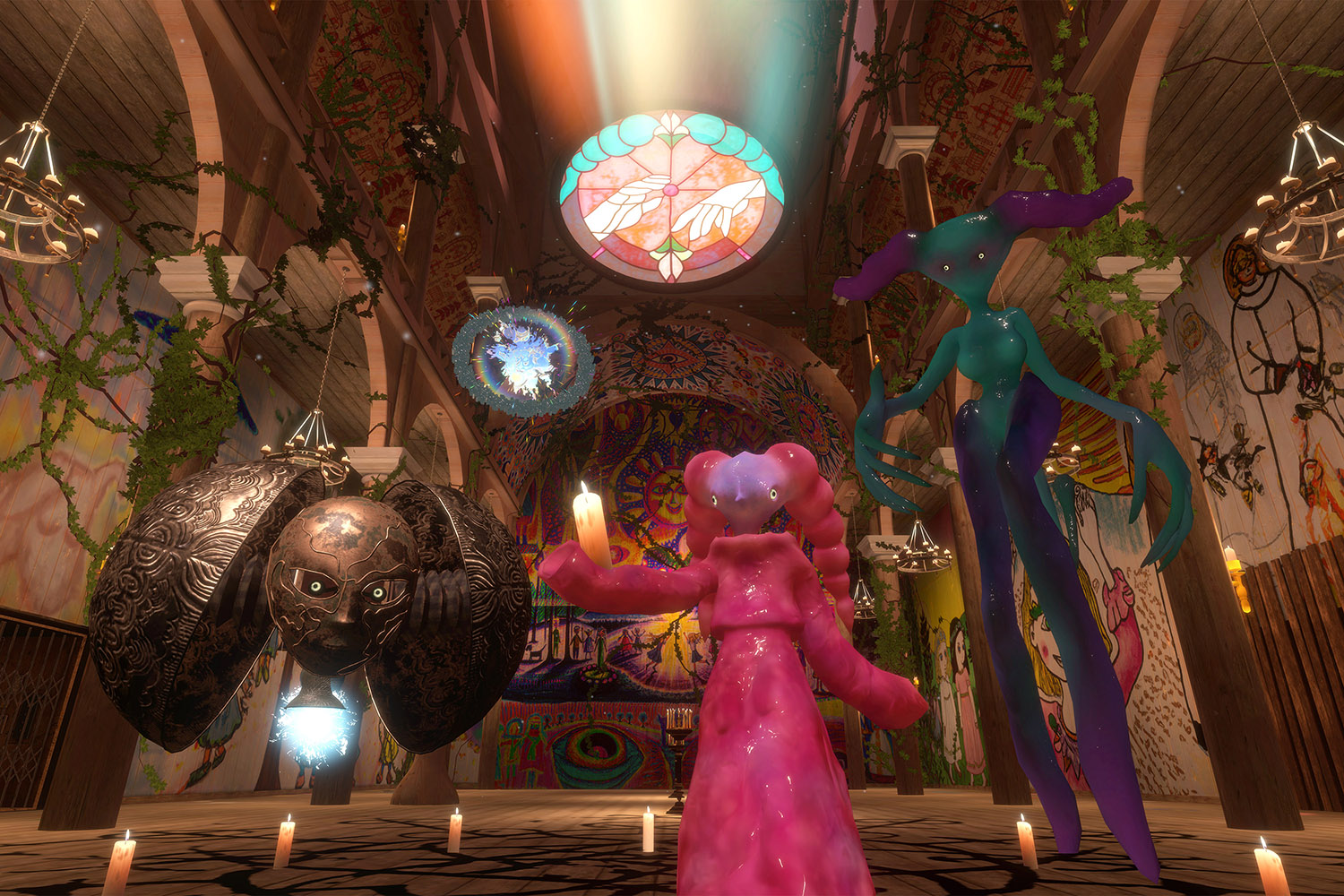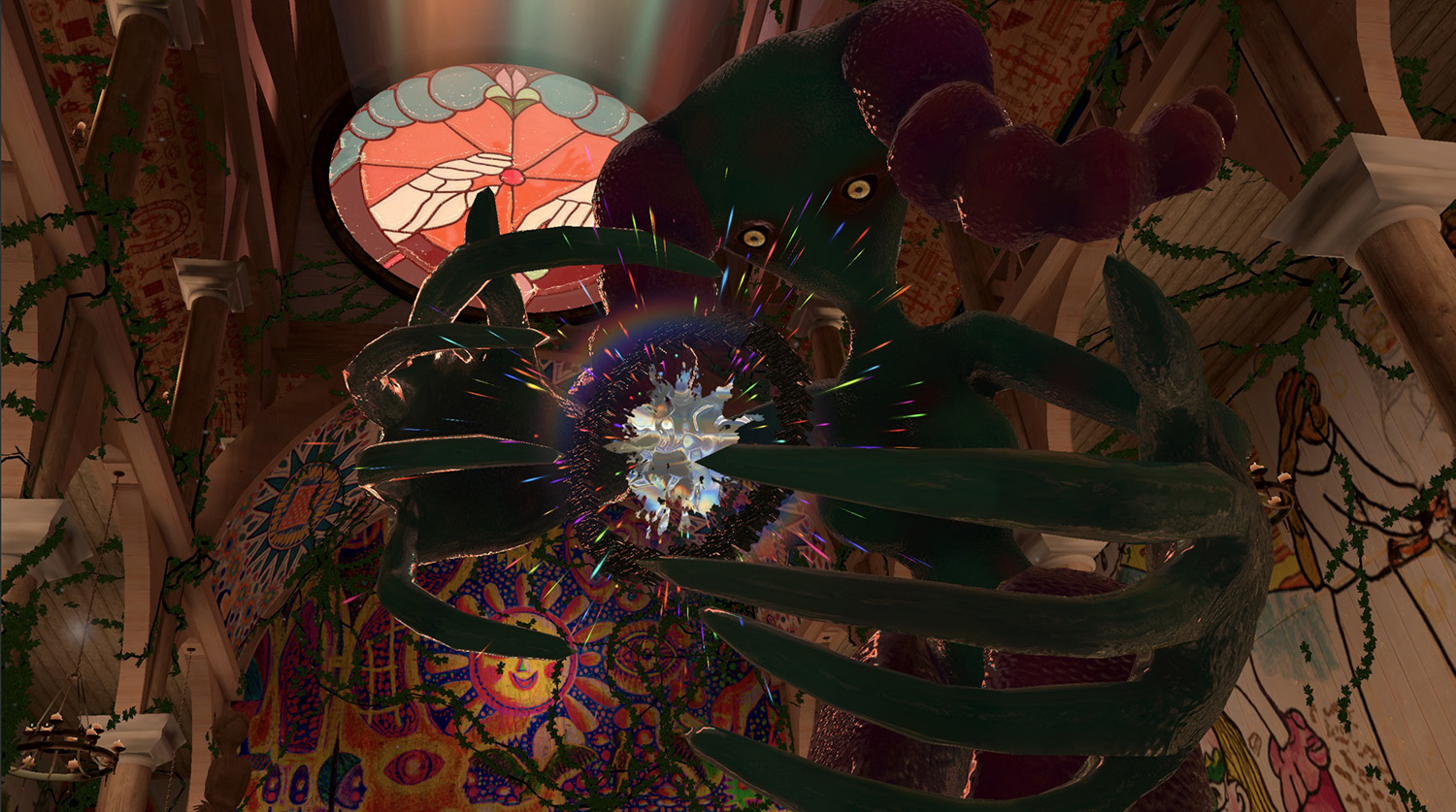 Many thanks to Lucie Gottlieb for crafting the stained-glass piece, and to Jonas Holmer for the sound design of the virtual church.