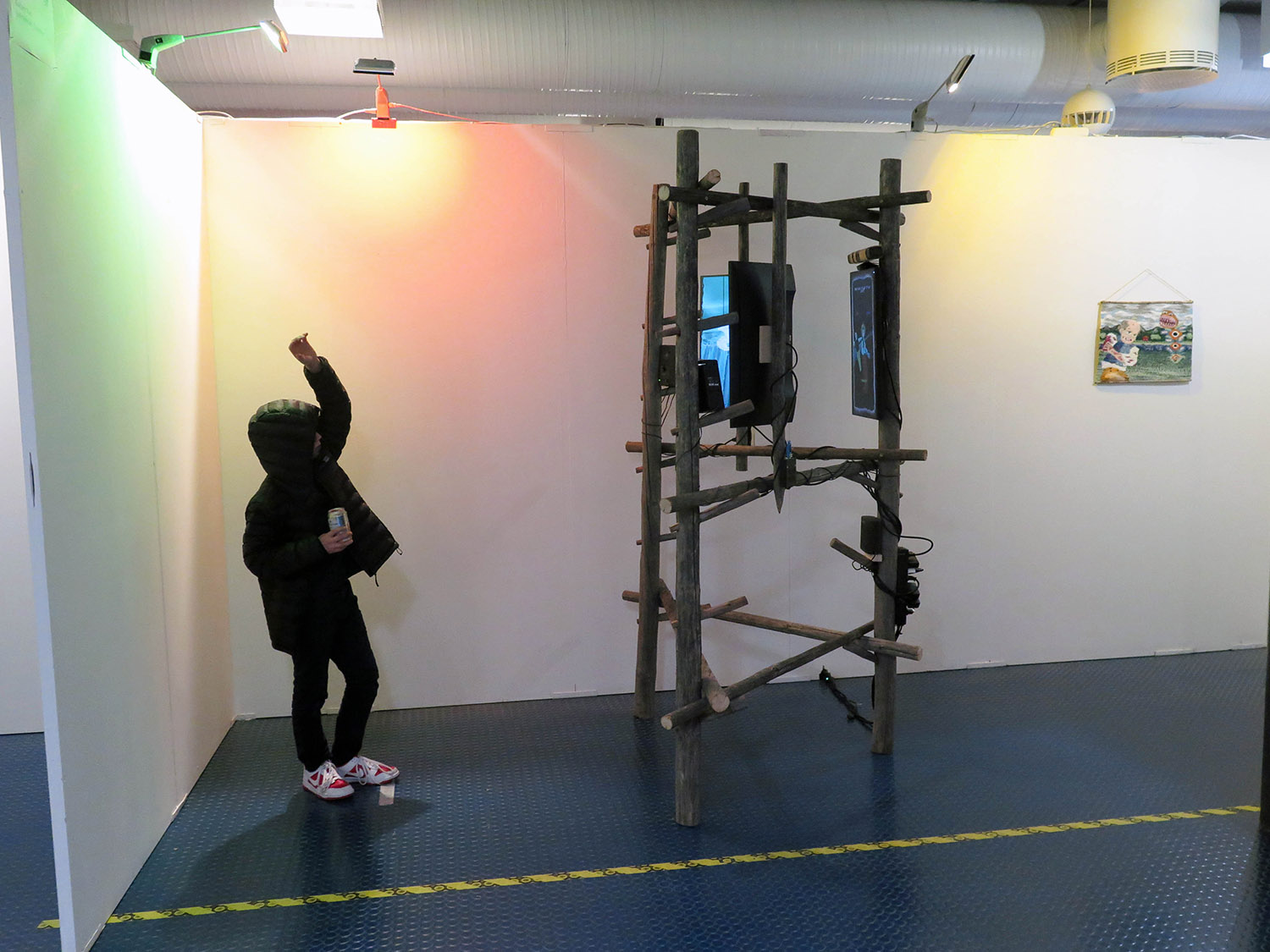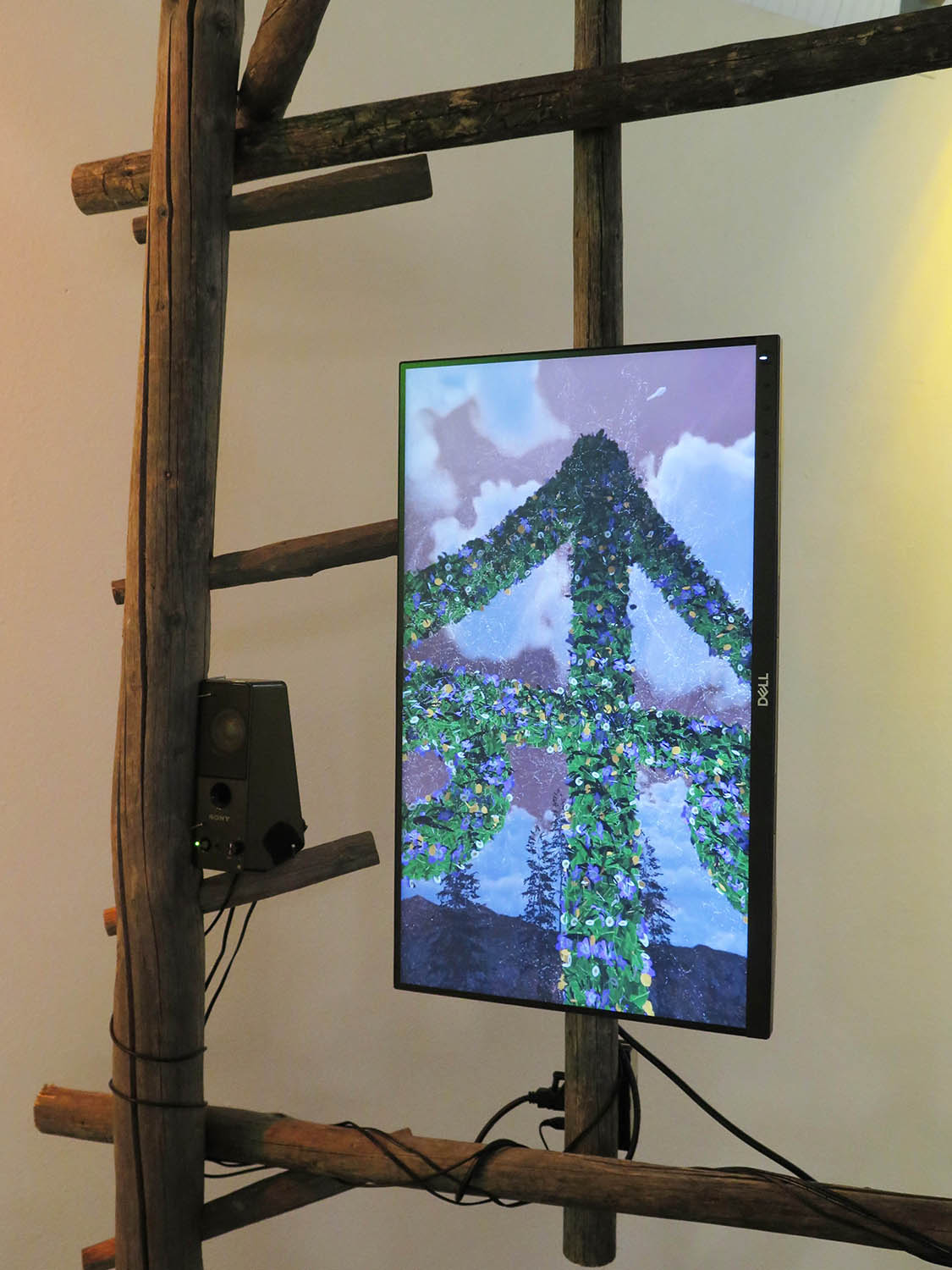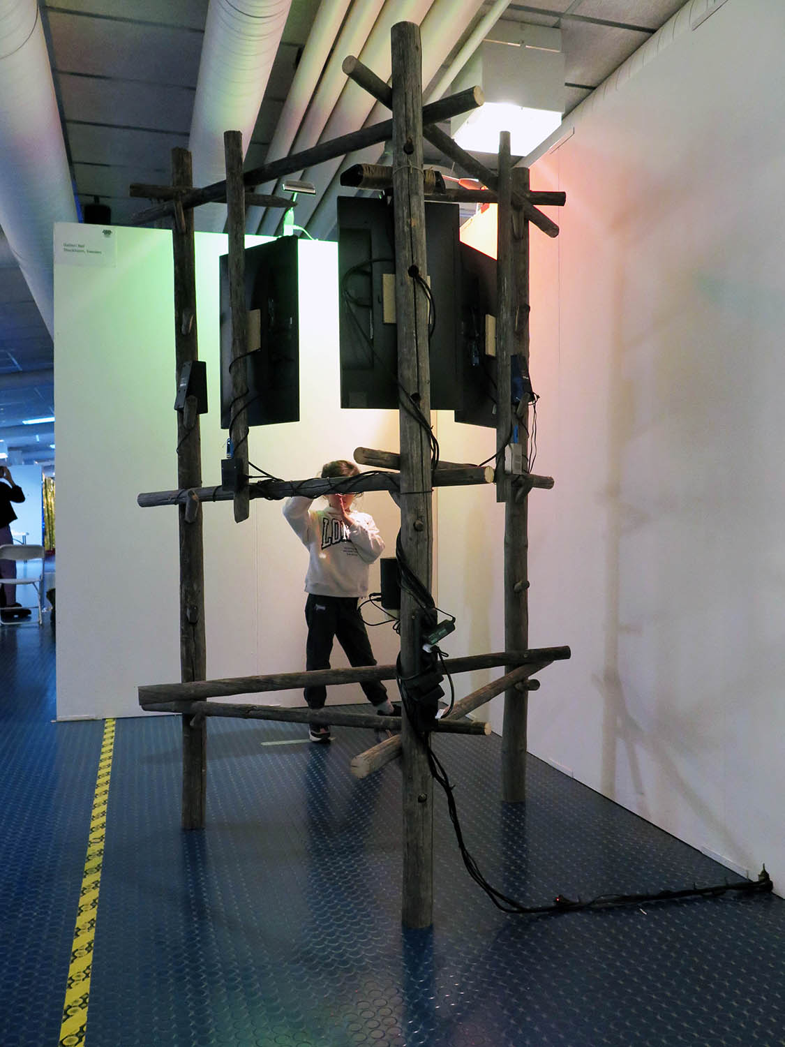 3-channel interactive wood, video and audio installation.